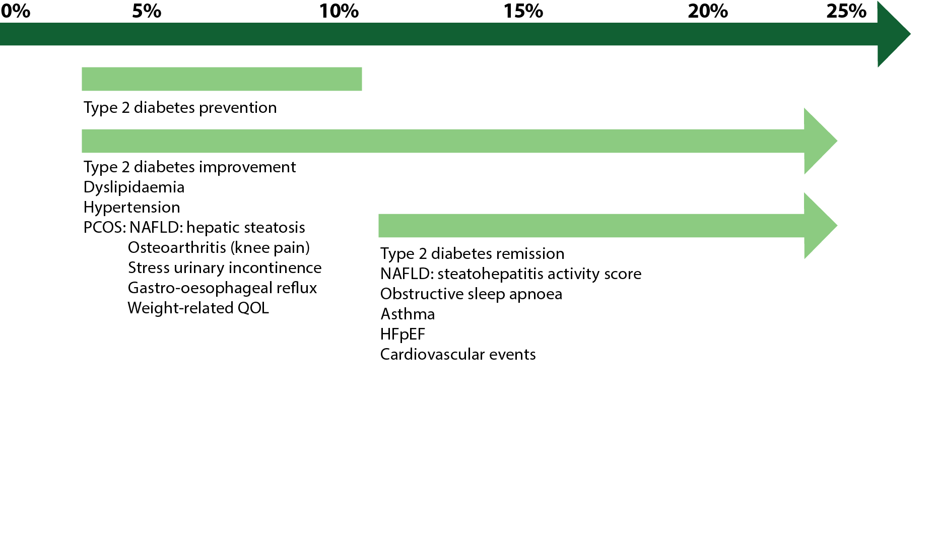 - Ryan DH, Yockey SR. Weight Loss and Improvement in Comorbidity: Differences at 5 percent, 10 percent, 15 percent, and Over. Current Obesity Reports. 2017;6(2):187-94.